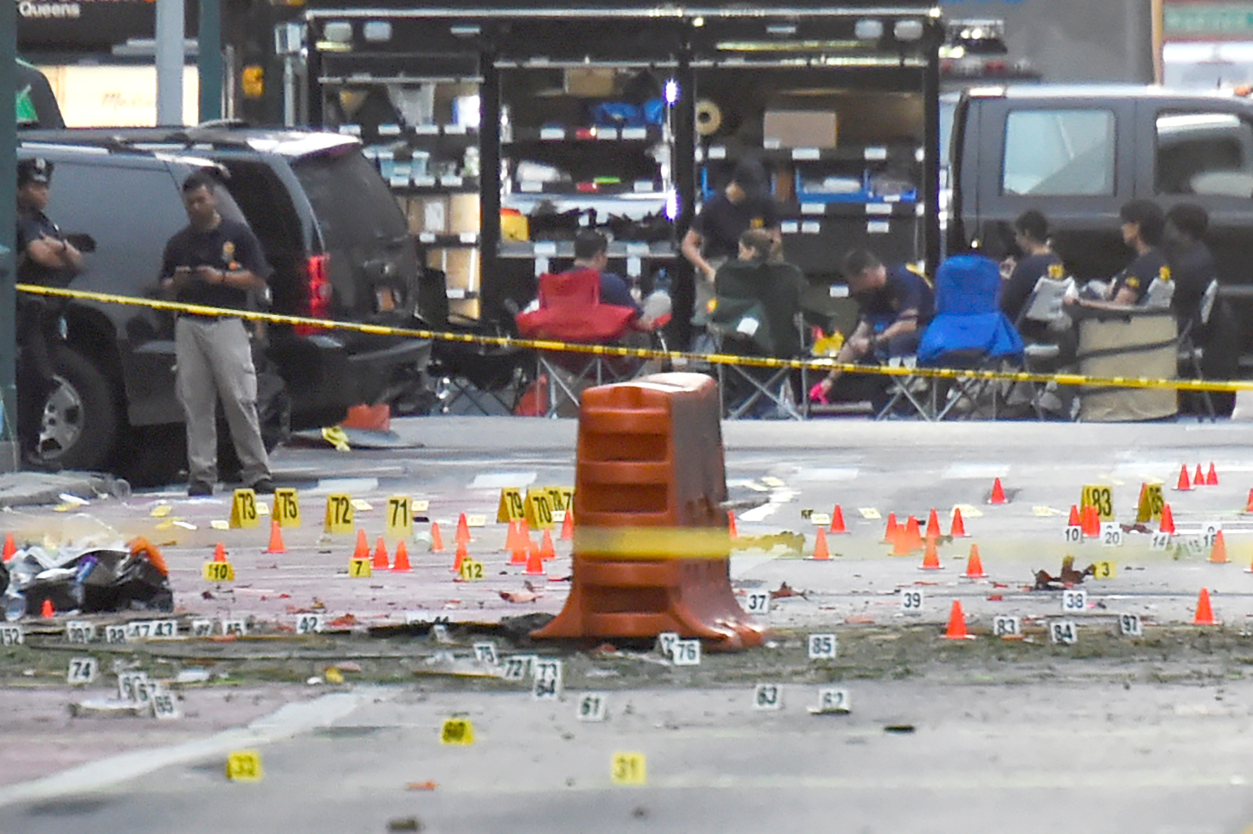 Mr. Cuomo said the explosion of the bomb in Manhattan — which was placed under a Dumpster made of heavy gauge steel — was so strong that it caused extensive property damage on both sides of the street, shattering windows up and down the block and sending shrapnel and debris flying. The mangled Dumpster remained roped off by crime-scene tape as store owners and residents slowly filtered back into the area.